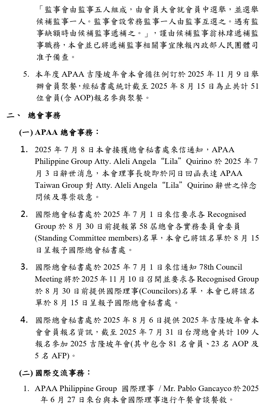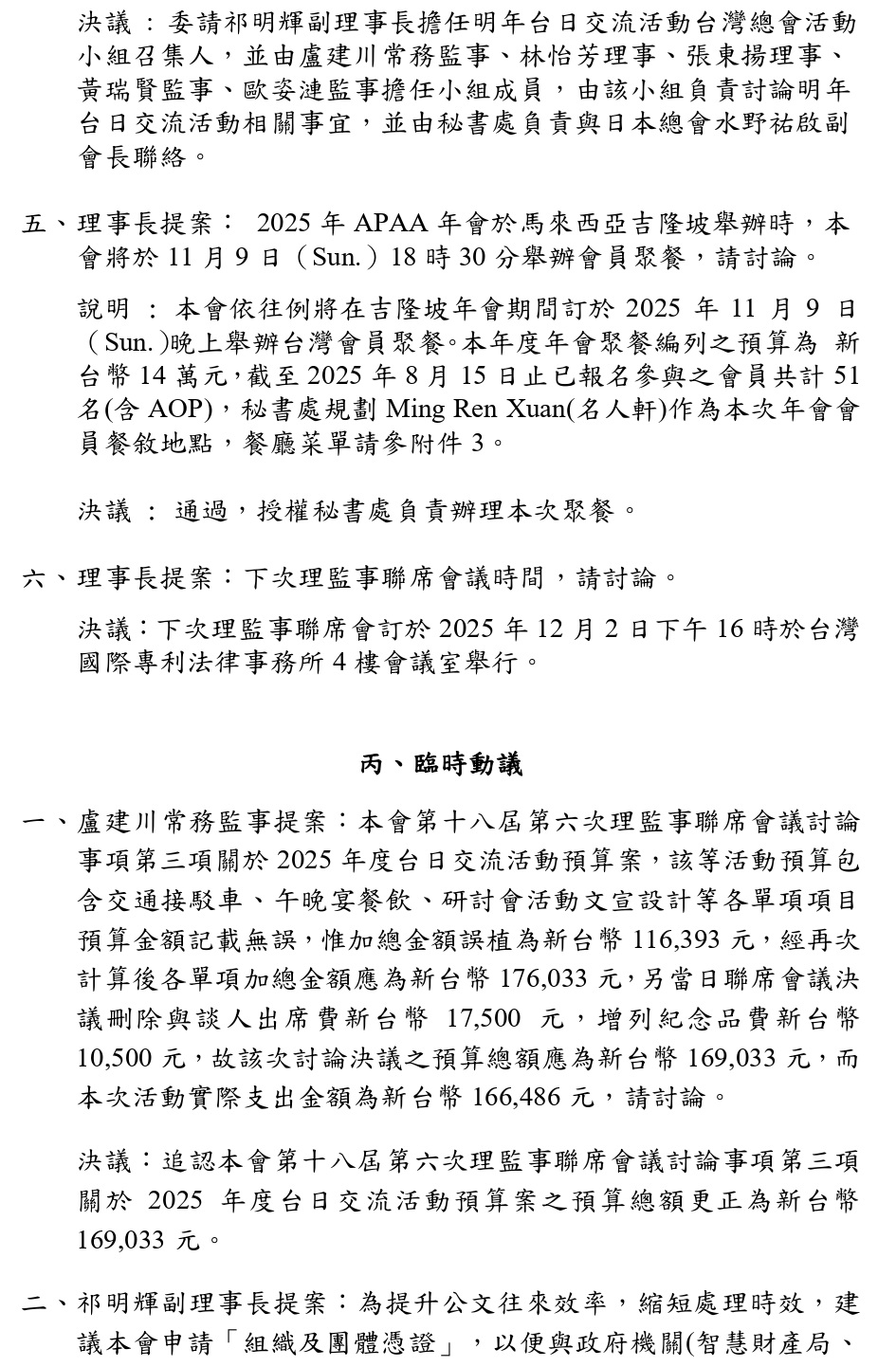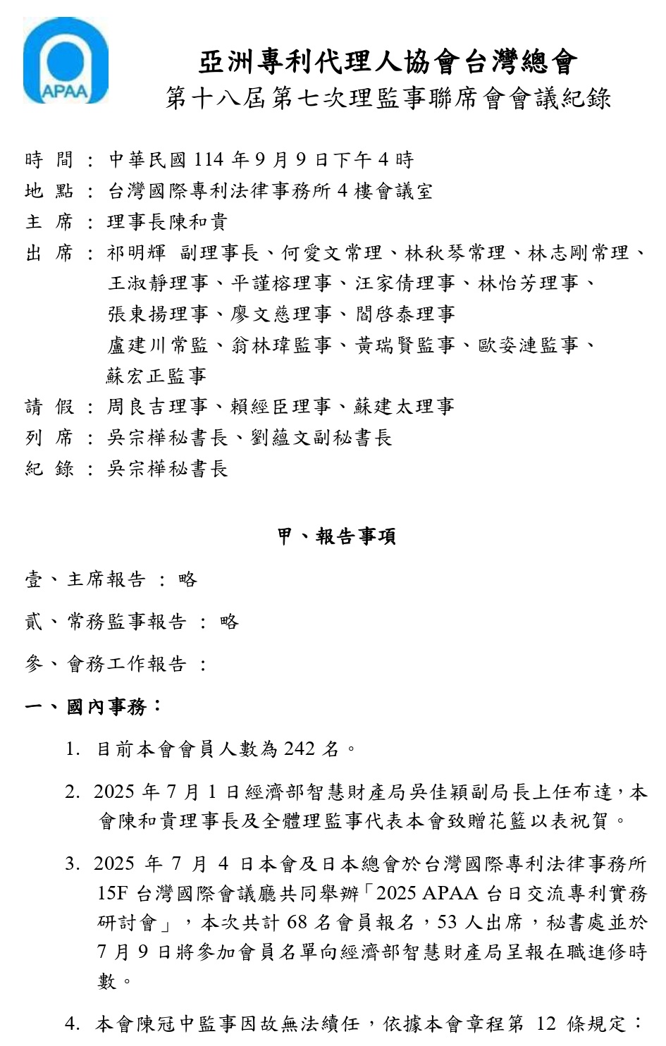 選單 第十八屆第七次理監事聯席會會會議紀錄第十八屆第六次理監事聯席會會議紀錄第十八屆第二次會員大會會議紀錄第十八屆第五次理監事聯席會會議紀錄第十八屆第二次會員大會議程第十八屆第二次常務理事會會議紀錄第十八屆第四次理監事聯席會會議紀錄第十八屆第三次理監事聯席會會議紀錄第十八屆第一次常務理事會會議紀錄第十八屆第二次理監事聯席會會議紀錄第十八屆第一次監事會議紀錄第十八屆第一次理事會議紀錄第十八屆第一次會員大會會議記錄第十八屆第一次會員大會活動議程第十七屆第三次會員大會會議記錄第十七屆第三次會員大會議程第十七屆第二次會員大會記錄第十七屆第二次會員大會議程(視訊會議)第十七屆第一次會員大會會議記錄第十七屆第一次會員大會議程第十六屆第三次會員大會會議記錄第十六屆第三次會員大會議程第十六屆第二次會員大會記錄第十六屆第二次會員大會活動程序表第十六屆第六次理監事聯席會議紀錄第十六屆第五次理監事聯席會議紀錄第十六屆第四次理監事聯席會議紀錄第十六屆第三次理監事聯席會議紀錄第十六屆第二次理監事聯席會議紀錄第十六屆第一次監事會會議紀錄第十六屆第一次理事會會議紀錄第十六屆第一次會員大會會議記錄第十五屆第3次會員大會議紀錄第十五屆第三次會員大會活動程序表第十五屆第九次理監事會議紀錄第十五屆第八次理監事會議紀錄第十五屆第七次理監事會議紀錄第十五屆第六次理監事會議紀錄第十五屆第五次理監事聯席會議第十五屆第二次會員大會記錄第十五屆第二次會會員大會活動程序表第十五屆第四次理監事聯席會議記錄第十五屆第三次理監事聯席會議紀錄第十五屆第二次理監事聯席會議記錄第十五屆第一次監事會會議紀錄第十五屆第一次會員大會記錄第十五屆第一次會員大會活動程序表第十五屆第一次理事會會議記錄第十四屆第十次理監事聯席會議紀錄第十四屆第九次理監事聯席會議紀錄第十四屆第三次會員大會活動程序表第十四屆第八次理監事聯席會議紀錄第十四屆第七次理監事聯席會議會議記錄第十四屆第六次理監事聯席會議會議記錄第十四屆第五次理監事聯席會議會議紀錄第十四屆第四次理監事聯席會議紀錄第十四屆第三次理事會議紀錄第十四屆第二次理監事聯席會議紀錄第十四屆第一次監事會會議記錄第十四屆第一次理事會會議記錄第十四屆第一次會員大會會議記錄 第十八屆第七次理監事聯席會會會議紀錄